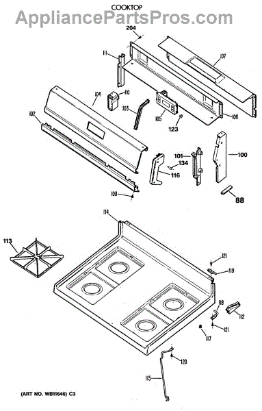 Parts for Ge JGBS17EV3AD: 02 - Cooktop Parts