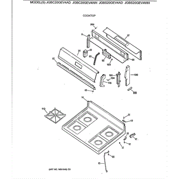 Parts for Ge JGBS20GEV4AD: 02 - Cooktop Parts