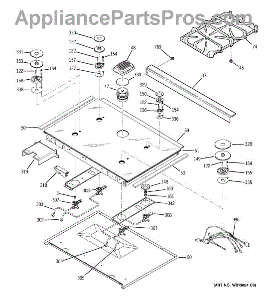 Parts for Ge JGS968BEK4BB: 03 - Cooktop Parts