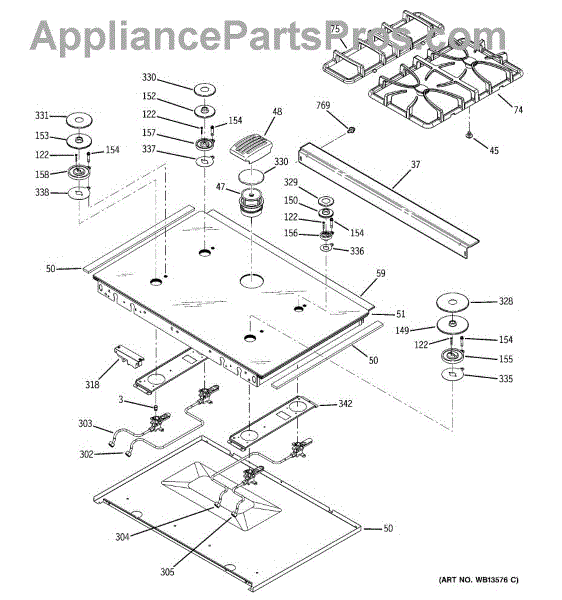 This is a double burner grate. The grates on a gas stove offer protection to the actual burner portion where the flames originate.Grates on a gas stove can become damaged through heavy impacts, rust, or other elements. Failure to keep them clean on a regular basis can also lead to permanent damage. Using certain pots and pans that aren't recommended for the surface could also be a cause of premature wear. Wear gloves when installing this part and be careful not to damage the burner eyes or stovetop. After removing the old grates, prepare the new ones by locating the slots the grates fasten to. Input the outer corners of the grates into these slots and slowly lower them down, making sure they're lined up evenly.This GE double burner grate is a genuine OEM replacement part sourced directly from GE. The grate is only available individually and does not include other parts or the original appliance. This product is compatible with GE brand gas stoves.
