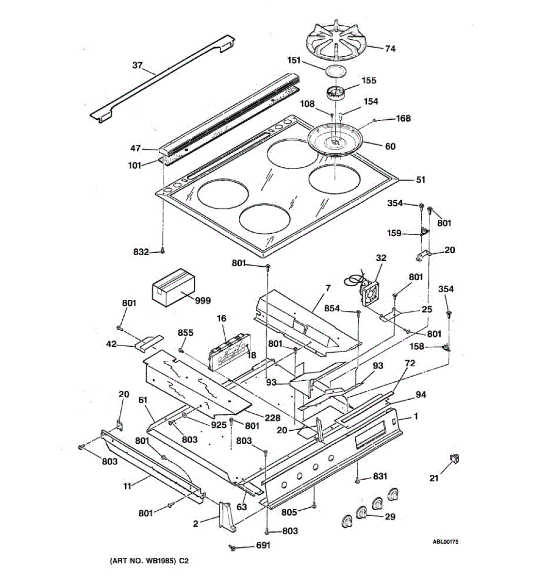 Parts for Ge JGSP44AEV2AA: 01 - Cooktop Parts