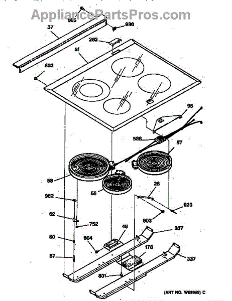 Parts for Ge JSP39WV2WW: Cooktop Parts