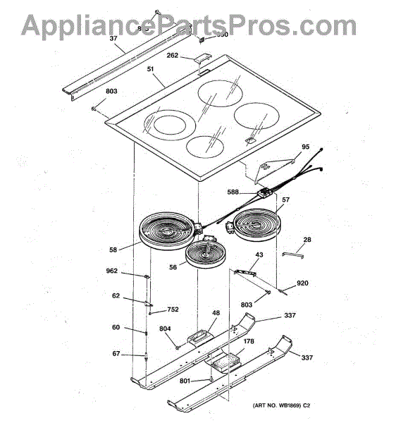 The Medium Haliant Element is an OEM part for GE cooktops. This radiant heating element is located beneath the ceramic cooktop surface and provides a medium-sized heating area for cooking various dishes. This element measures 6 Inches. Causes of a bad haliant element can include electrical issues such as short circuits, wear and tear from regular use, or physical damage from impacts or overheating. Symptoms of a bad medium haliant element include: