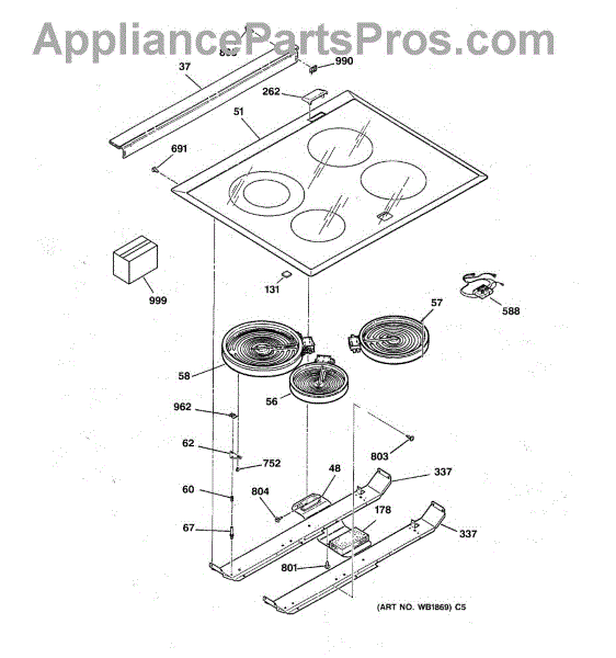 Burner only heating on small ring or not heating at all? This radiant element heats cookware through the glass cooktop surface. DIY replacement in 1-2 hours.