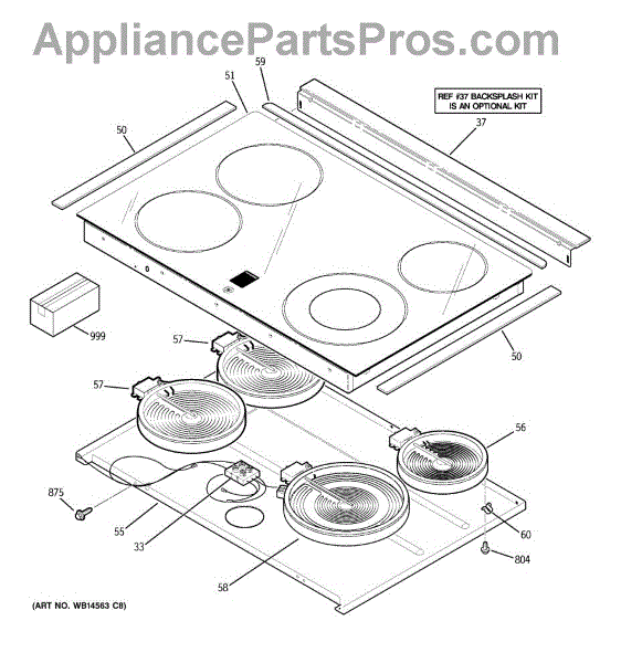 Parts for Ge JSP42DN3BB: 02 - Cooktop Parts