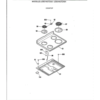 Parts for Ge LEB316GT2AD: 02 - Cooktop Parts