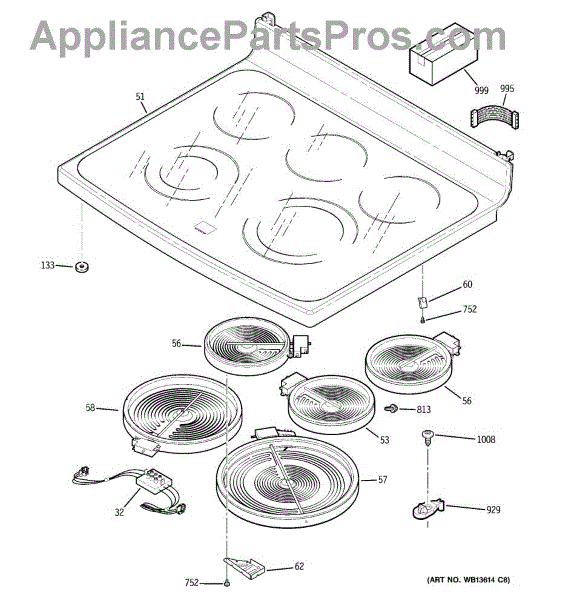 Parts for Ge PB970SP6SS: 02 - Cooktop Parts