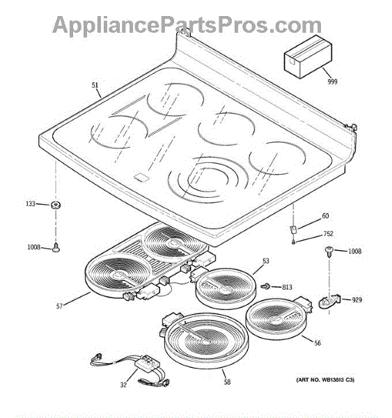 Parts for Ge PCB975DP1BB: Cooktop Parts