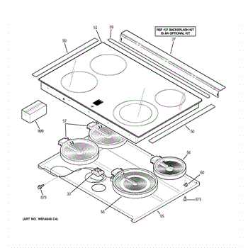 Glass cooktop surface for ranges. Replaces cracked, chipped, or broken glass main top. Direct fit for select models. Restores cooktop appearance.