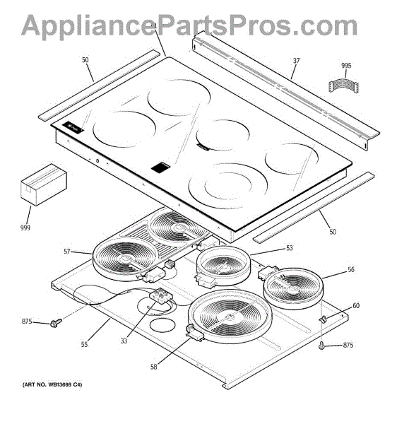 The Maintop Glass Assembly is an OEM part for GE electric ranges. As the cooktop surface, this glass panel protects burners from spills and facilitates easy cleaning.