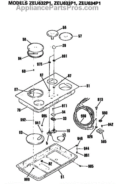 Parts for Ge ZEU632P1T: Cooktop Parts