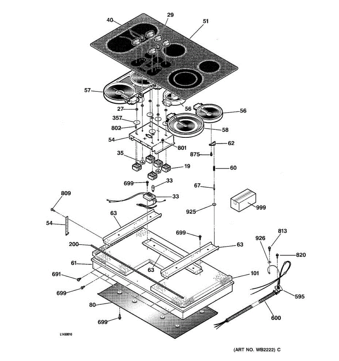 Insulation pad that installs beneath the cooktop surface to reduce heat transfer and dampen sound. Replace if the original pad is damaged or missing.