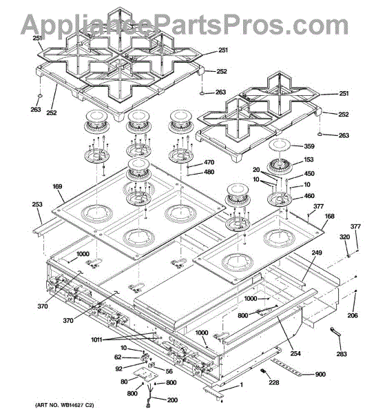Cast iron support frame that sits beneath range grates to support pots and pans during cooking. Replace if cracked, broken, or damaged from heavy cookware.