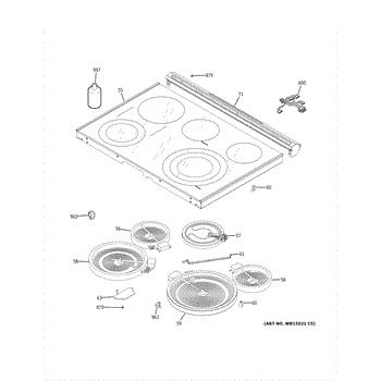 This dual radiant surface element sits beneath the glass cooktop and provides two heating zones to match your pan size. Replacing a failed element restores fast, even heating and proper control on the affected burner.