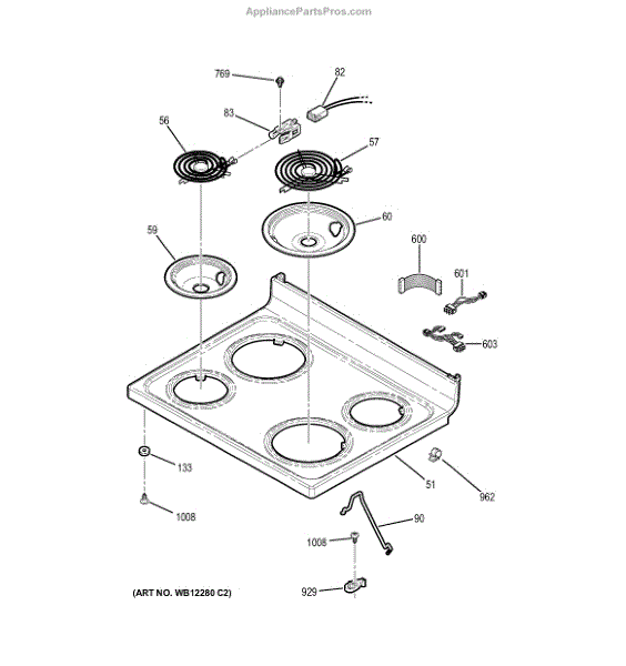 Parts for Ge JB250DF4BB: Cooktop Parts