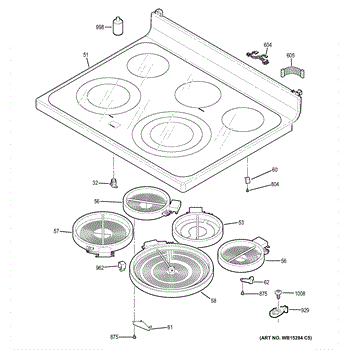 Parts for Ge JB755DJ2WW: Cooktop Parts