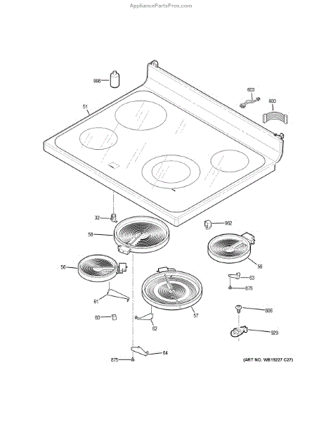 Parts for Ge JBS60DK7BB: Cooktop Parts