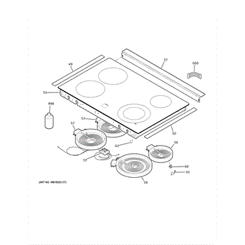 Glass cooktop assembly for electric ranges. Replaces cracked, shattered, or damaged glass cooktop surfaces. Direct fit for compatible range models.