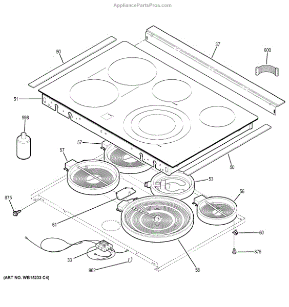 The Radiant Stovetop Element is an OEM part for GE electric ranges. It is designed to provide consistent and even heat for cooking. This element sits beneath the glass or ceramic cooktop surface and heats up when electricity flows through it, allowing you to cook food efficiently.