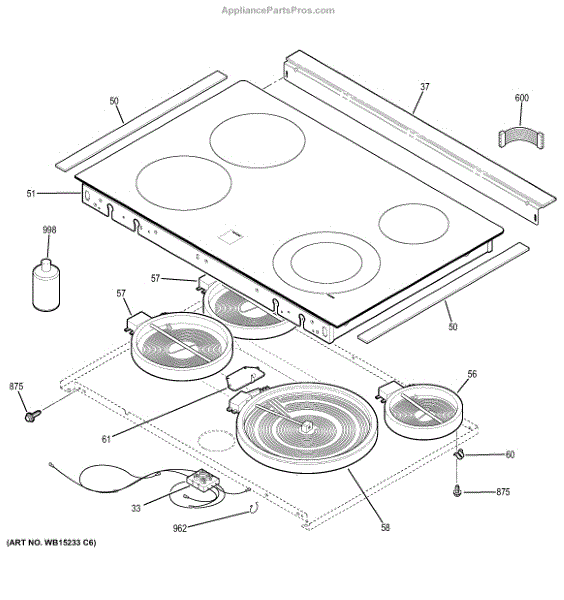 The Radiant Stovetop Element is an OEM part for GE electric ranges. It is designed to provide consistent and even heat for cooking. This element sits beneath the glass or ceramic cooktop surface and heats up when electricity flows through it, allowing you to cook food efficiently.