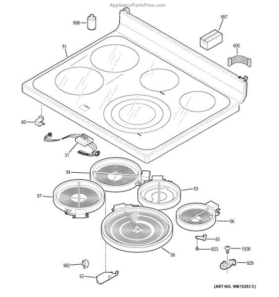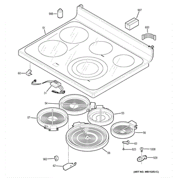 This dual radiant surface element sits beneath the glass cooktop and provides two heating zones to match your pan size. Replacing a failed element restores fast, even heating and proper control on the affected burner.