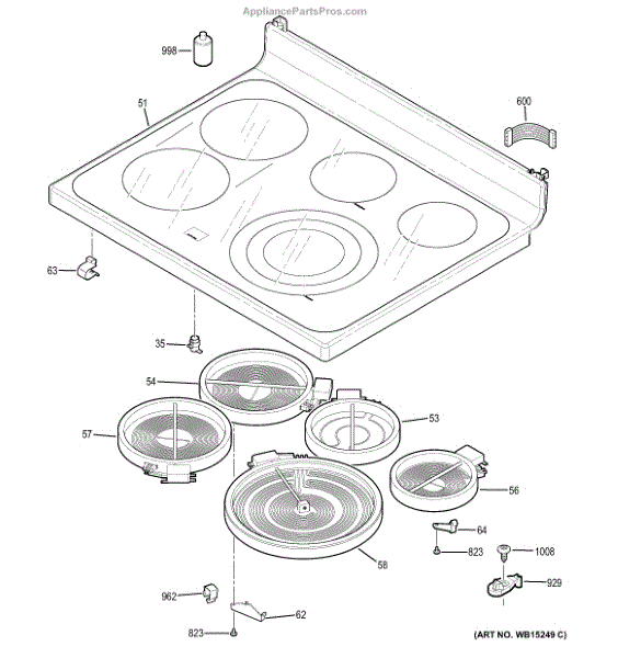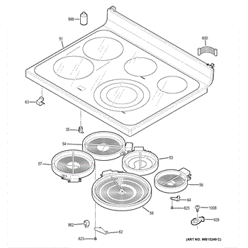 This dual radiant surface element sits beneath the glass cooktop and provides two heating zones to match your pan size. Replacing a failed element restores fast, even heating and proper control on the affected burner.