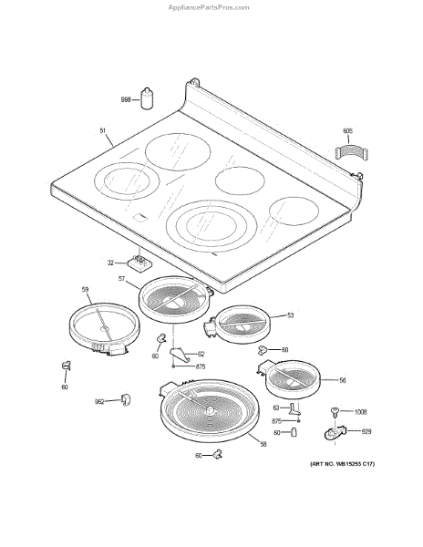 Parts for Ge PB965YP3FS: Cooktop Parts