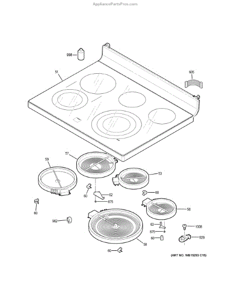 This dual radiant surface element sits beneath the glass cooktop and provides two heating zones to match your pan size. Replacing a failed element restores fast, even heating and proper control on the affected burner.