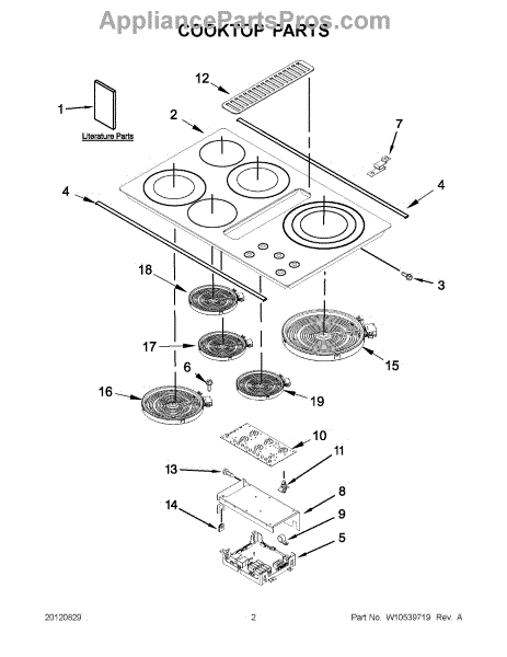 The Cooktop is an OEM component specifically designed for Whirlpool electric ranges. Comprising the glass-ceramic surface with integrated heating elements below, the cooktop provides the essential cooking area. Through precise temperature controls, the cooktop allows for the versatile preparation of meals.