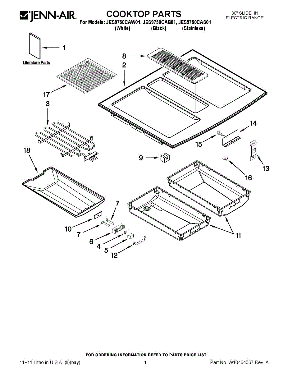 Parts for Jenn-Air JES9750CAW01: 01 - Cooktop Parts