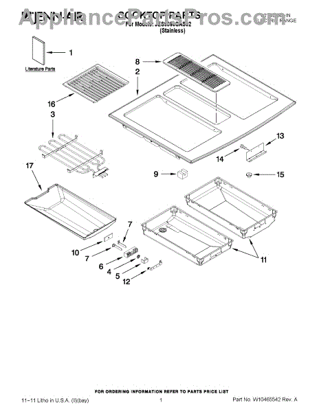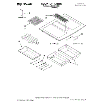 Parts for Jenn-Air JES9860CAS02: 01 - Cooktop Parts