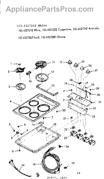 Parts for Kenmore 103.4327212 (1034327212, 103 4327212): Cooktop Parts
