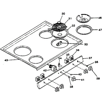 Parts for Kenmore 119.9038810 (1199038810, 119 9038810): Cooktop (119.9098810) Parts