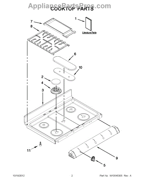 This burner head mounts on the cooktop and distributes gas evenly to produce a steady flame. Replacing a worn or damaged head restores proper flame pattern and helps your burner light quickly and cook consistently.