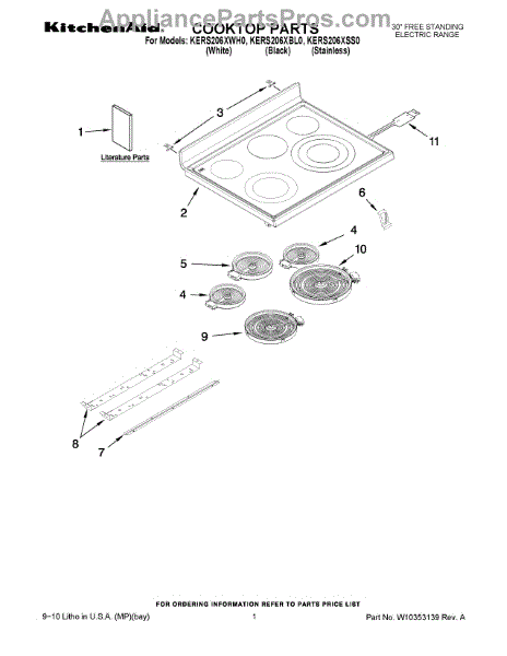 Parts for Kitchenaid KERS206XSS0: 01 - Cooktop Parts