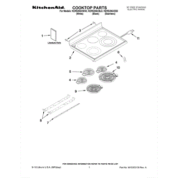 Parts for Kitchenaid KERS206XWH0: 01 - Cooktop Parts