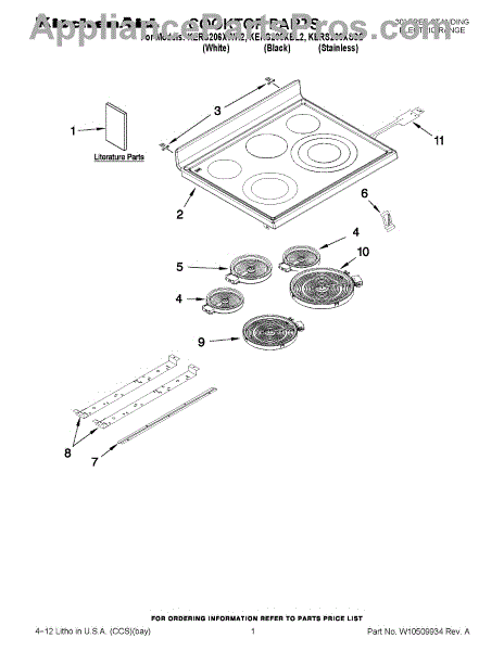 Parts for Kitchenaid KERS206XWH2: 01 - Cooktop Parts