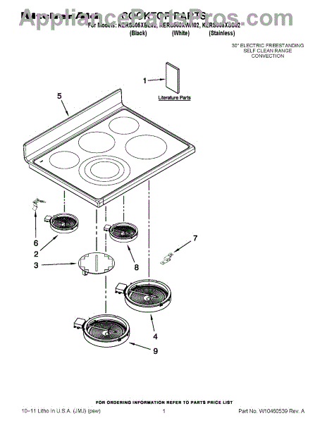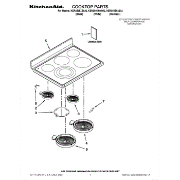 Parts for Kitchenaid KERS505XSS02: 01 - Cooktop Parts