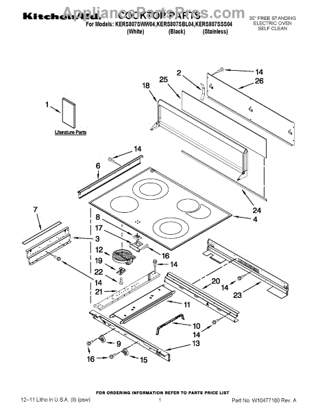 Parts for Kitchenaid KERS807SSS04: 01 - Cooktop Parts