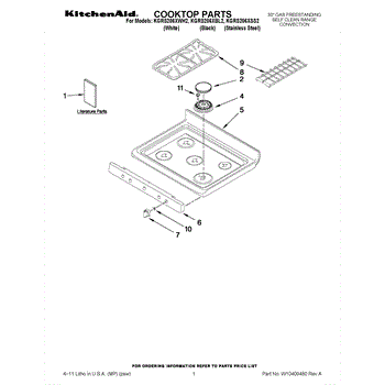 Parts for Kitchenaid KGRS206XSS2: 01 - Cooktop Parts