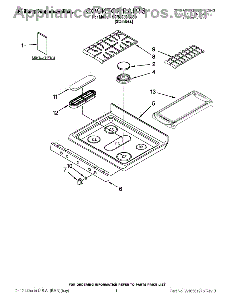 Parts for Kitchenaid KGRS308XSS0: 01 - Cooktop Parts
