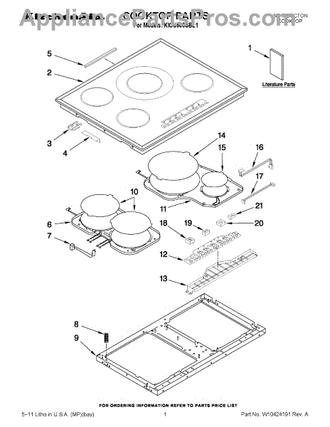 Parts for Kitchenaid KICU508SBL1: 01 - Cooktop Parts