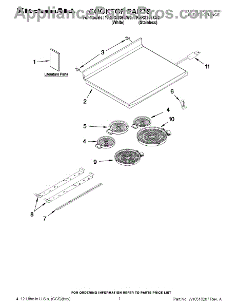 Parts for Kitchenaid YKERS206XS2: 01 - Cooktop Parts
