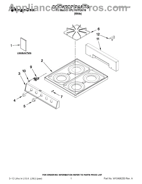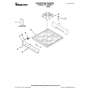 Parts for Maytag CPL1100BDW16: 01 - Cooktop Parts