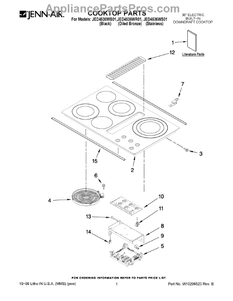 Parts for Maytag JED4536WB01: 01 - Cooktop Parts