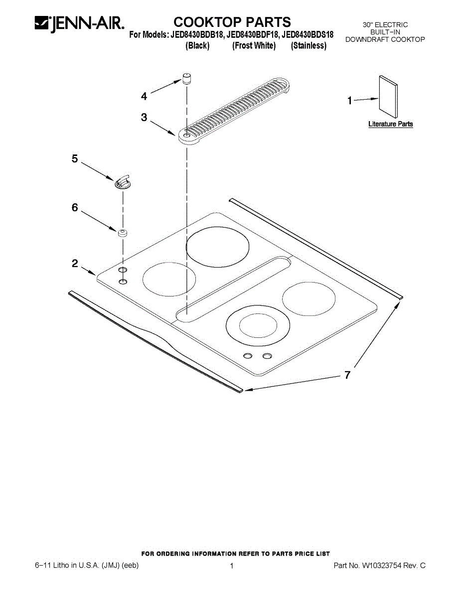 This replacement cooktop surface panel forms the appliance's upper cooking surface. It restores a smooth, level top, protects internal components from spills, and ensures correct alignment of the surface components for safe, reliable everyday use.