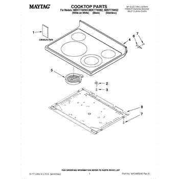 Parts for Maytag MER7775WB2: 01 - Cooktop Parts