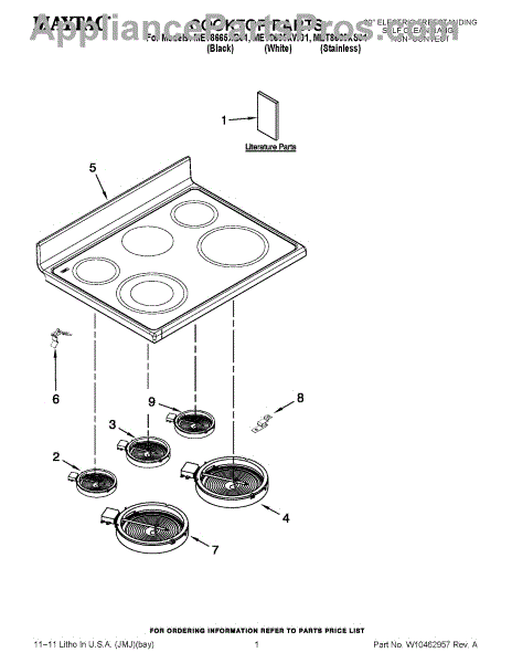 Parts for Maytag MET8665XS01: 01 - Cooktop Parts