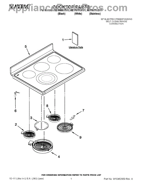 Parts for Maytag MET8885XS01: 01 - Cooktop Parts