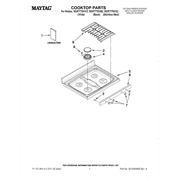 Parts for Maytag MGR7775WB2: 01 - Cooktop Parts